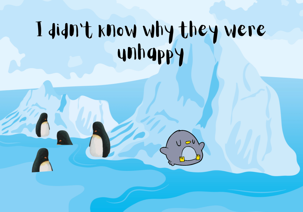 This little story about an unhappy Penguin was written/made as part of a picture book assignment when I was pursuing British Council’s online writing course. This is an imaginary sequel to Lost and Found by Oliver Jeffers. Perhaps you can call it fan fiction ๐ But don’t kill me after reading this.
